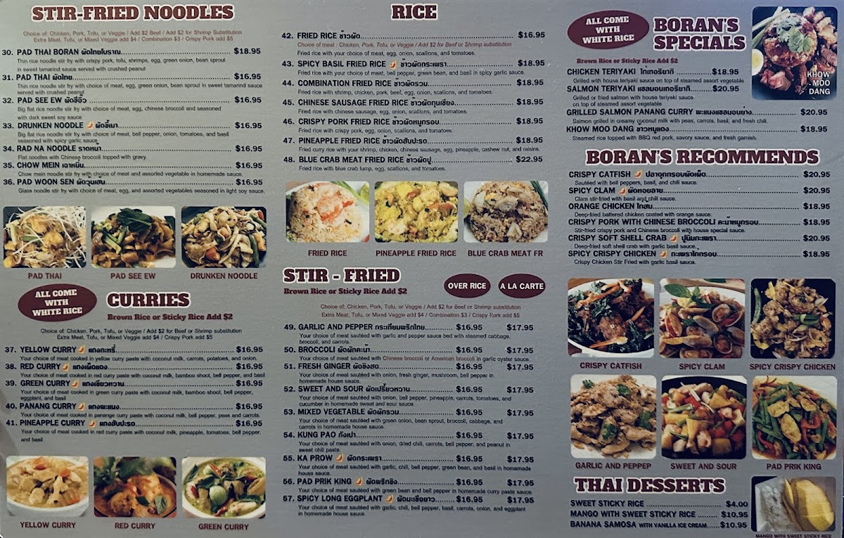 Your choice of meat cooked in red curry paste with coconut milk, pineapple, tomatoes, bell pepper, and basil.
